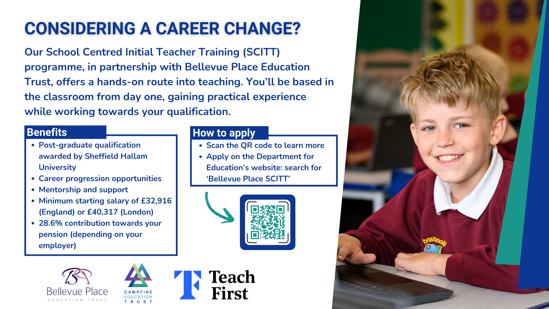 Campfire Education Trust has partnered with Bellevue Place Education Trust to offer Initial Teacher Training, in all of their schools, from September 2024 and applications are now open.
