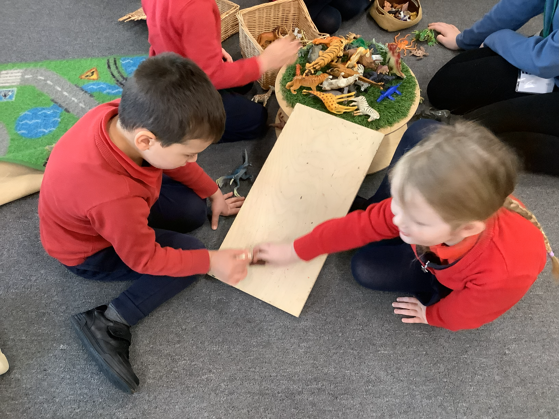 The children have really enjoyed going on a shape hunt and asked to do it again. They found so many different shapes inside and out. They were all different sizes this then sparked another interest that things can be the same shape but different sizes.