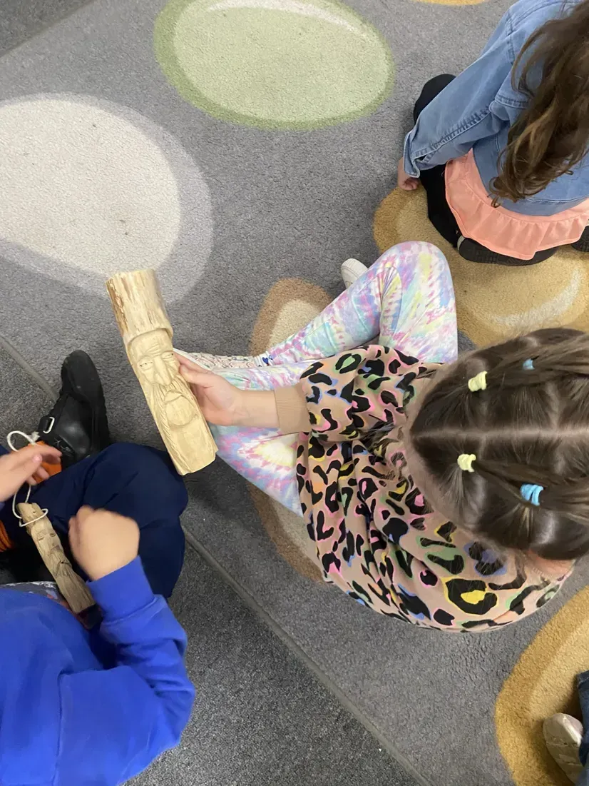 Year 1 really enjoyed their Religious Education topic, 'is everybody special?' last half term. During this unit, they received a visit from Reverend Pope who told them all about a baptism in the Christian faith. As well as this, our art lessons focused on exploring non-tradition art forms, such as art with fabric. We had a visit from an Artist, Tom, who creates wood spirits by wood carving. We were so inspired that we even designed our own wood spirit and Tom will choose his favourite to carve for us soon! How exciting!