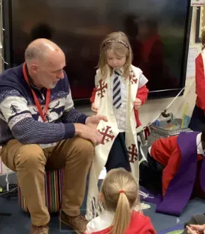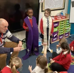 On Friday 8th December, we had a very special visit in Year 2. Reverend Tim Edworthy, the Baptist minister of Well Street United Church, came to teach us all about the colours of the church year and we all learnt so much. The children were really respectful, showing off what they had learnt in RE while also asking questions to find out even more.