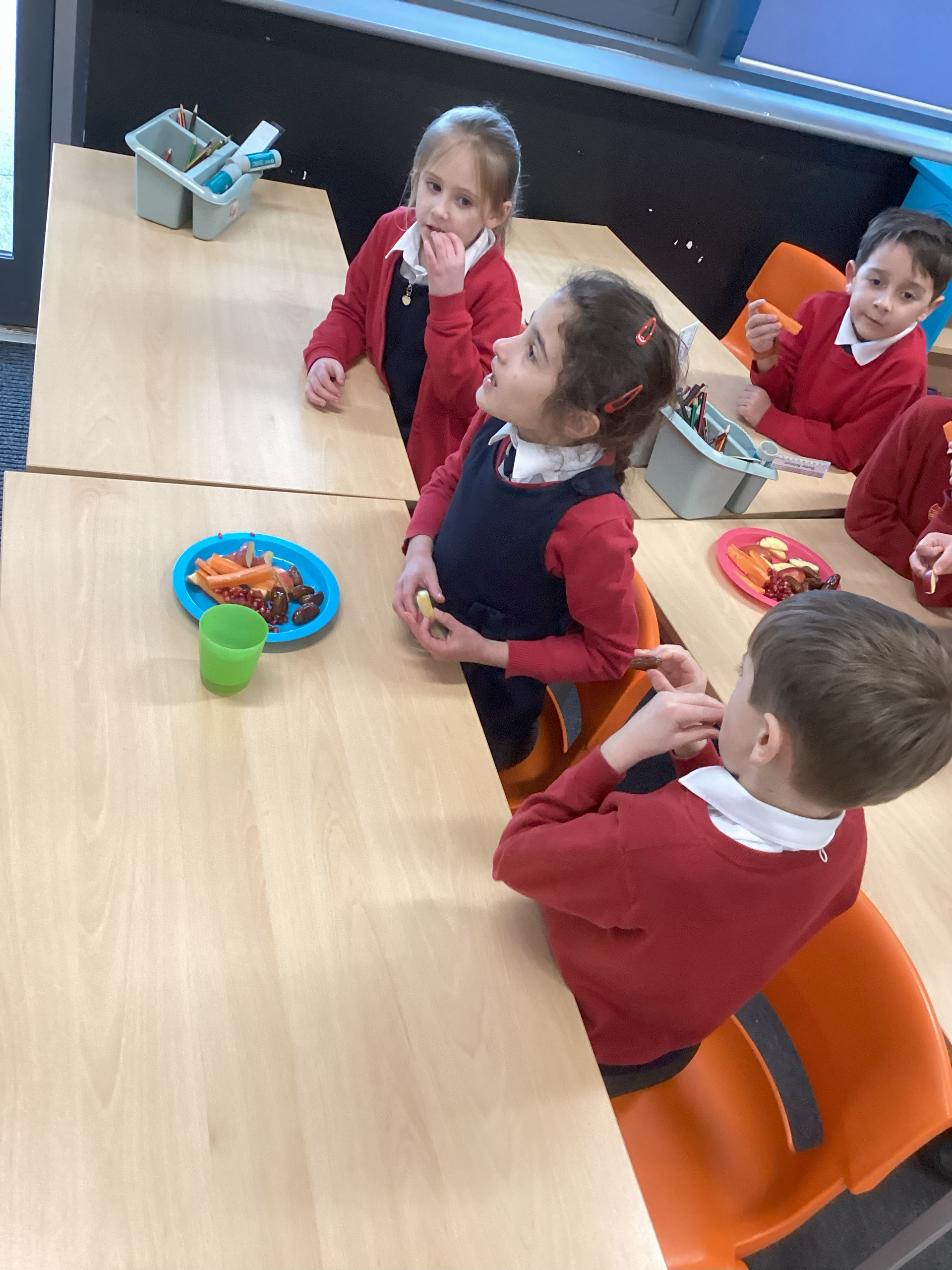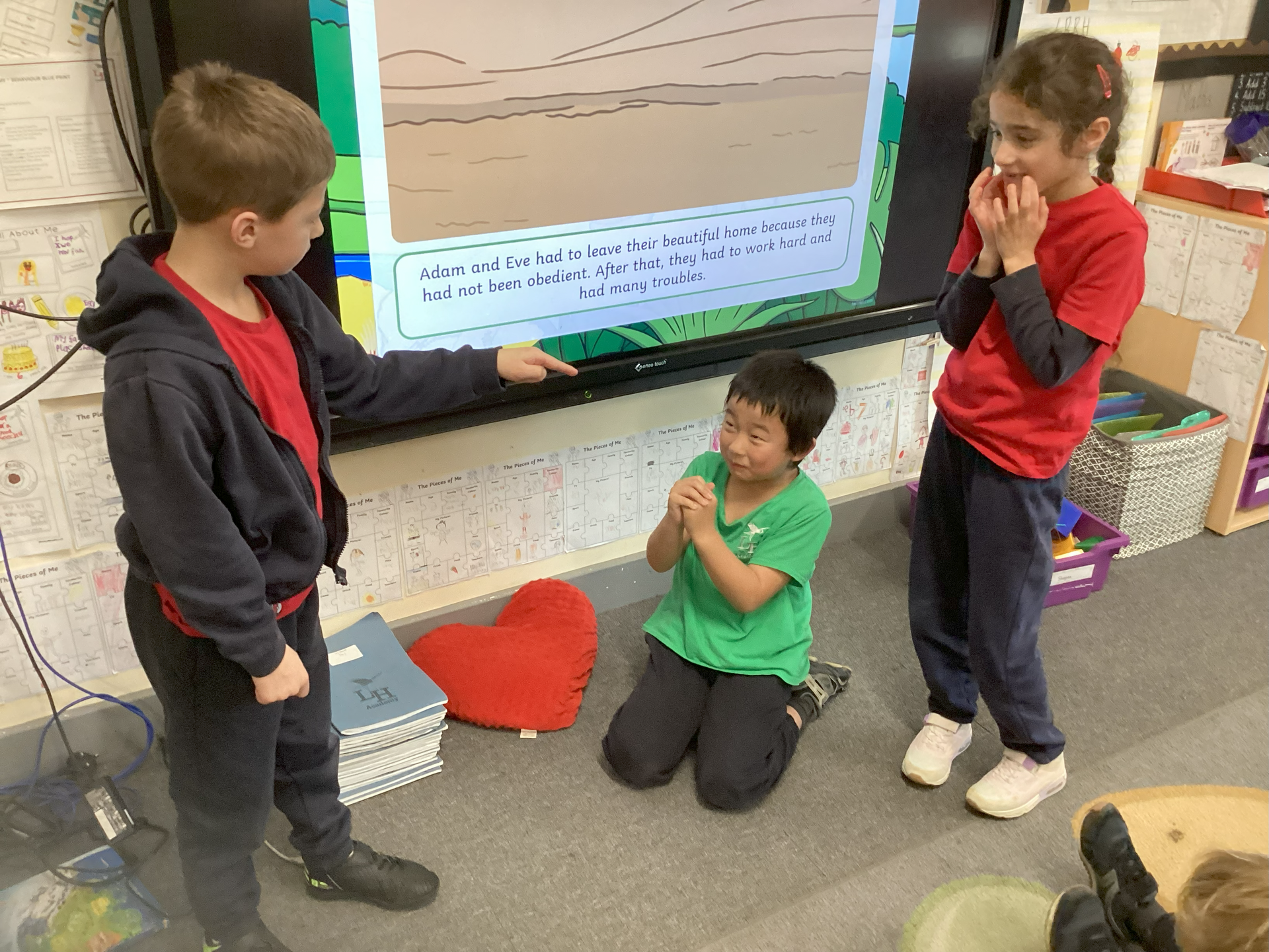 During RE, the children acted out the story of Adam and Eve as well as trying some foods linked to Rosh Hashanah.